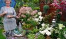 Biała hortensja pochyla się nad purpurowymi liśćmi żurawki. Przy nich azalie i rozchodniki konkurują o uwagę z hostami i fioletowymi plamami drobnych płatków werbeny patagońskiej. Obok malowane gliniane dzbany, a nad tym wszystkim turkusowe latarnie...
