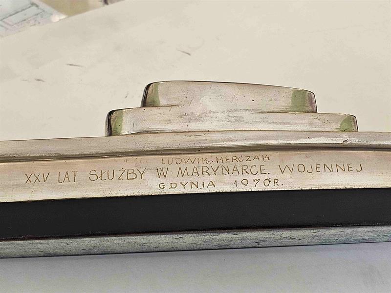 Do zbiorów muzealnych trafił także model ORP „Sęp” z napisem: „Ludwik Herczak – 25 lat służby w Marynarce Wojennej, Gdynia 1970 rok”. To pamiątka po Ludwiku Herczaku-Osmolińskim, powstańcu warszawskim, pionierze Kołobrzegu, marynarzu i społecznym działaczu, którego losy są wyjątkowym świadectwem historii Polski XX wieku.