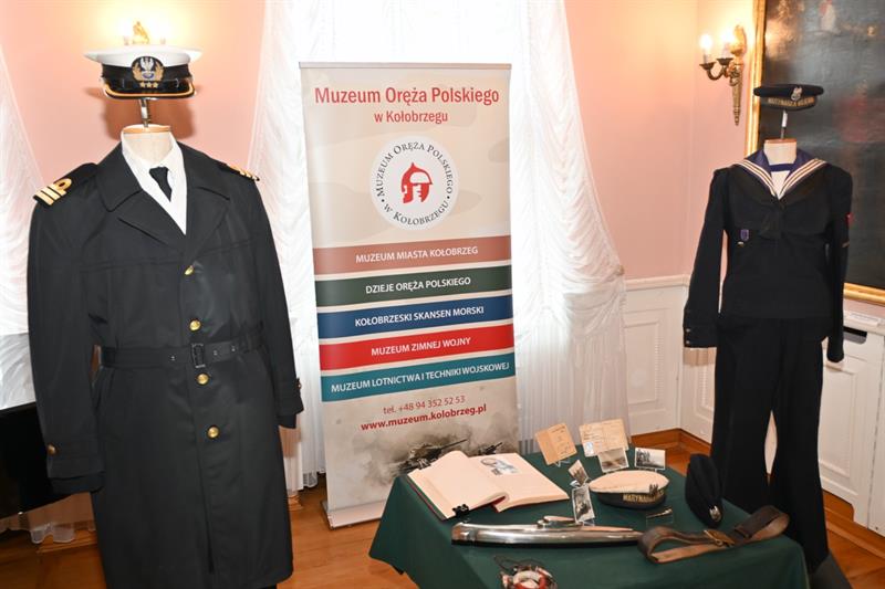 W miejskim oddziale Muzeum Oręża Polskiego przy ul. Armii Krajowej 13 w Kołobrzegu na początku sierpnia br. zaprezentowano eksponaty, które wzbogaciły zbiory placówki o cenne pamiątki związane z historią polskiej Marynarki Wojennej. Dzięki wsparciu Polskiej Żeglugi Morskiej oraz Fundacji Publico Mare, do muzeum trafił m.in. kompletny wyjściowy mundur marynarza z lat 50. XX wieku oraz wyjątkowe artefakty związane z okrętem podwodnym ORP „Sęp”.