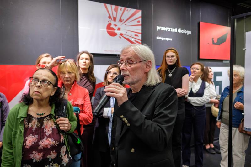 – Nazizm się skończył, ale to nie oznaczało wolności. Zaraz potem rozpoczął się komunizm, który dzielił narody. Dzisiejsze spotkanie, w tym miejscu – w Centrum Dialogu Przełomy – jest lekcją historii i patriotyzmu. Musimy pamiętać, że wojna trwa także dziś, tuż za naszą wschodnią granicą, gdzie agresorem jest Rosja, a ofiarą Ukraina – podkreślała. Razem z przewodniczącą sejmiku województwa Teresą Kaliną wręczyła artyście bukiet słoneczników, symbol światła i nadziei w obliczu trudnych tematów, jakie porusza jego twórczość.