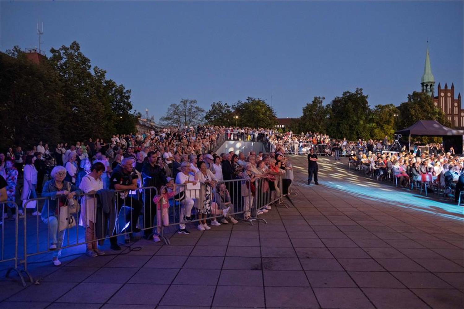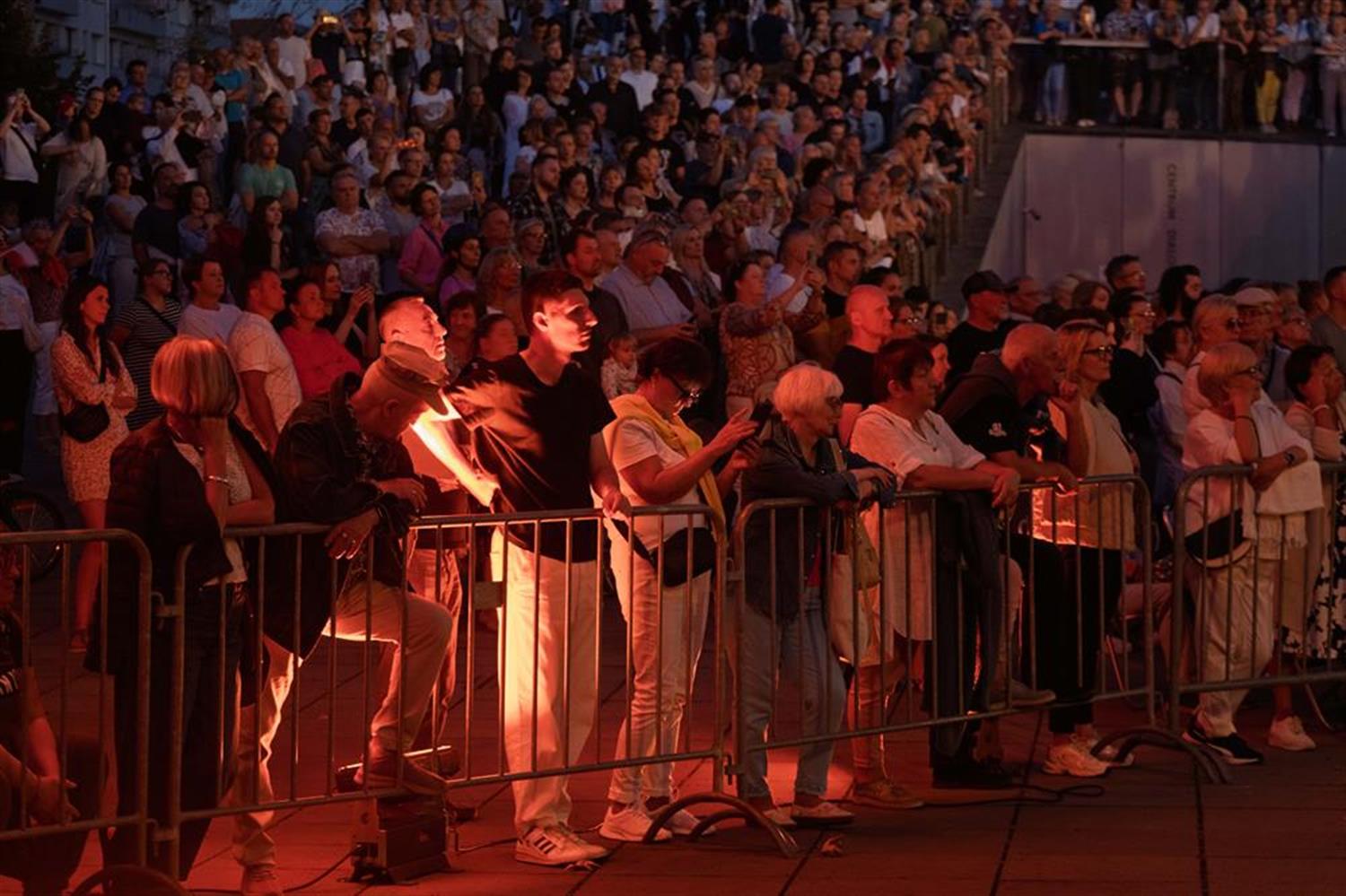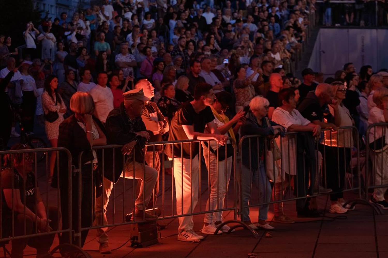 Atmosfera była spokojna, skupiona na muzyce. Zgromadzeni słuchali bez przesadnych owacji, ale z wyraźnym zainteresowaniem i w ciszy, która dodawała całości powagi. Plac Solidarności, rozświetlony światłem sceny, stał się miejscem, gdzie muzyka unosiła się ponad głowami publiczności i niosła w stronę centrum miasta. Wieczór upływał w rytmie melodii dobrze znanych i takich, które odkrywano na nowo.