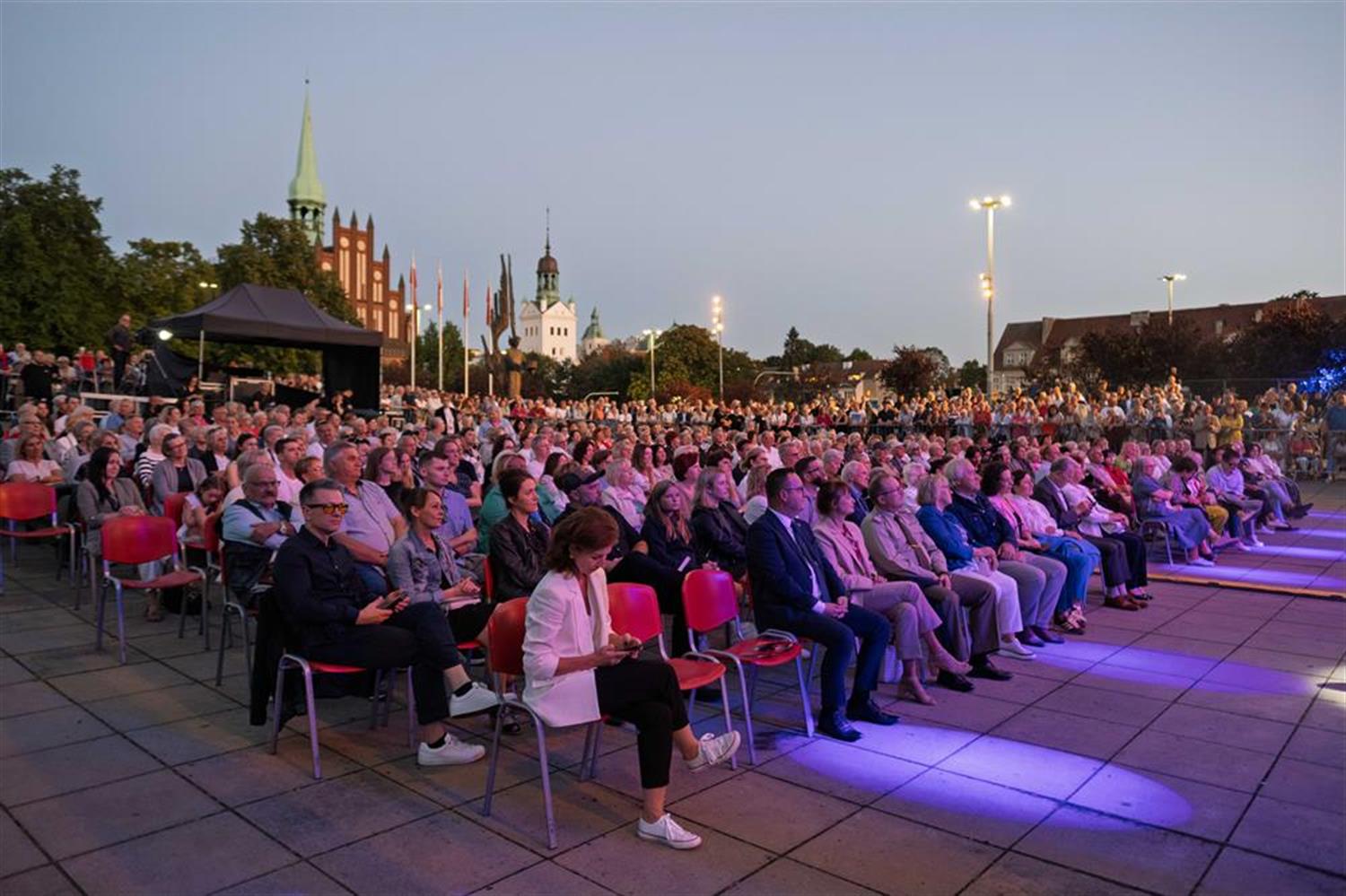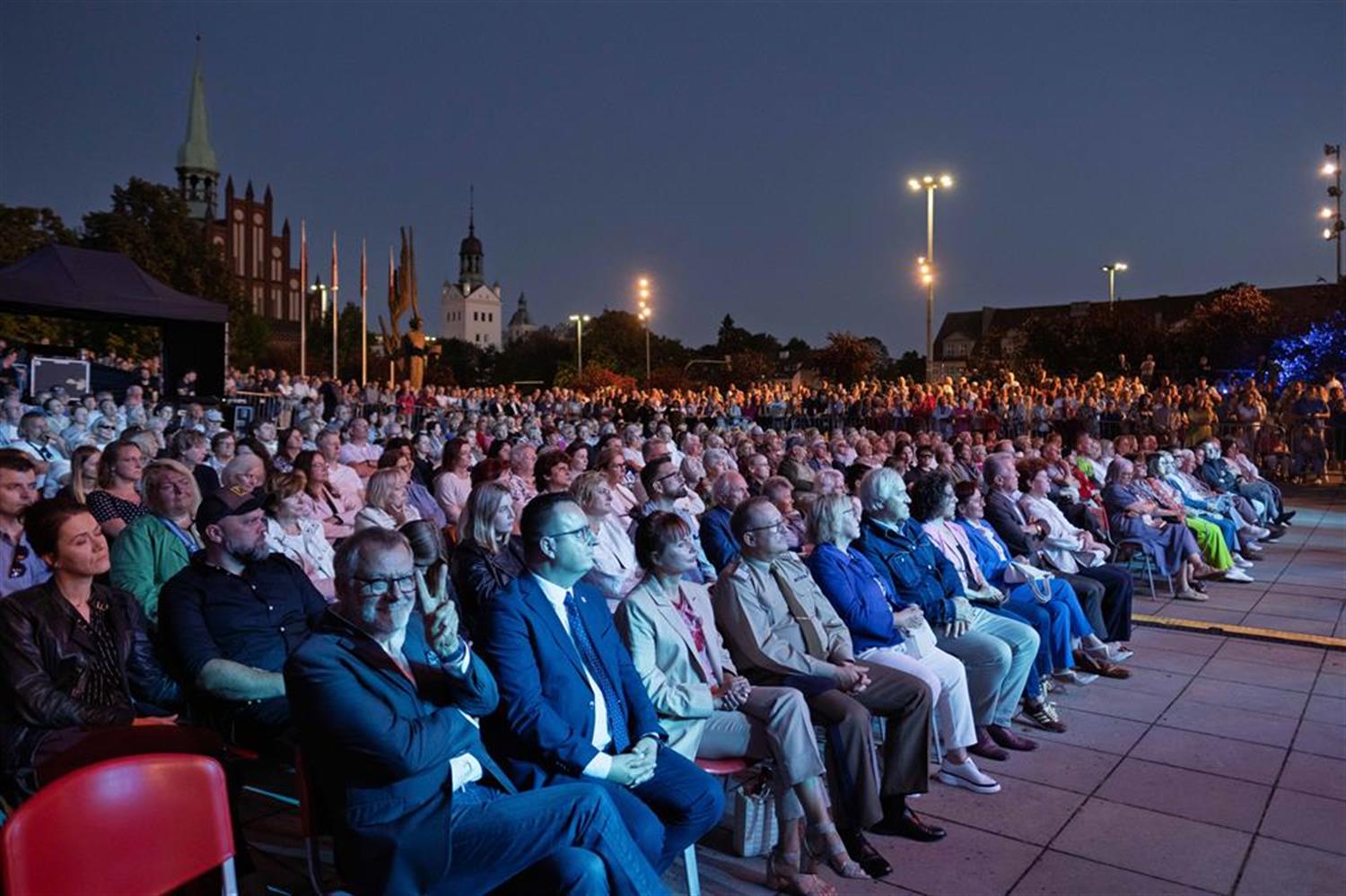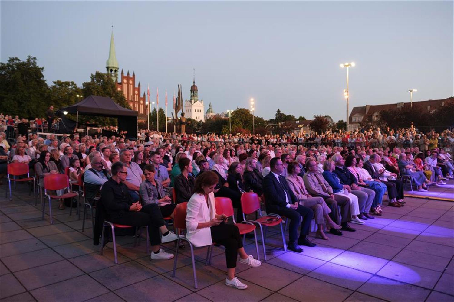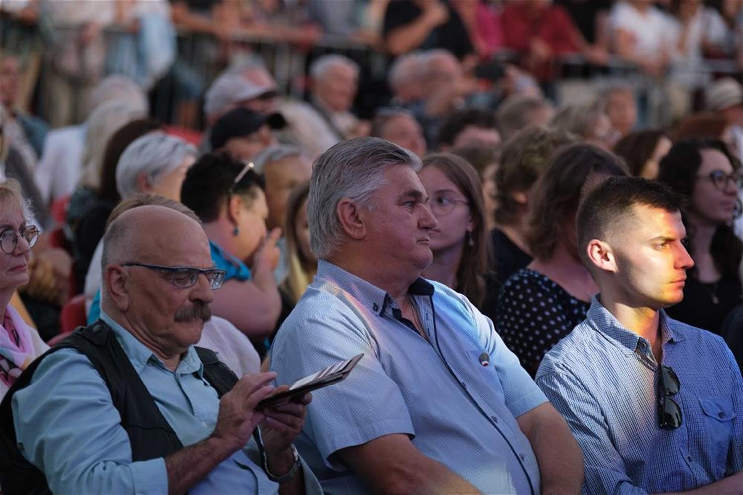 Atmosfera była spokojna, skupiona na muzyce. Zgromadzeni słuchali bez przesadnych owacji, ale z wyraźnym zainteresowaniem i w ciszy, która dodawała całości powagi. Plac Solidarności, rozświetlony światłem sceny, stał się miejscem, gdzie muzyka unosiła się ponad głowami publiczności i niosła w stronę centrum miasta. Wieczór upływał w rytmie melodii dobrze znanych i takich, które odkrywano na nowo.
