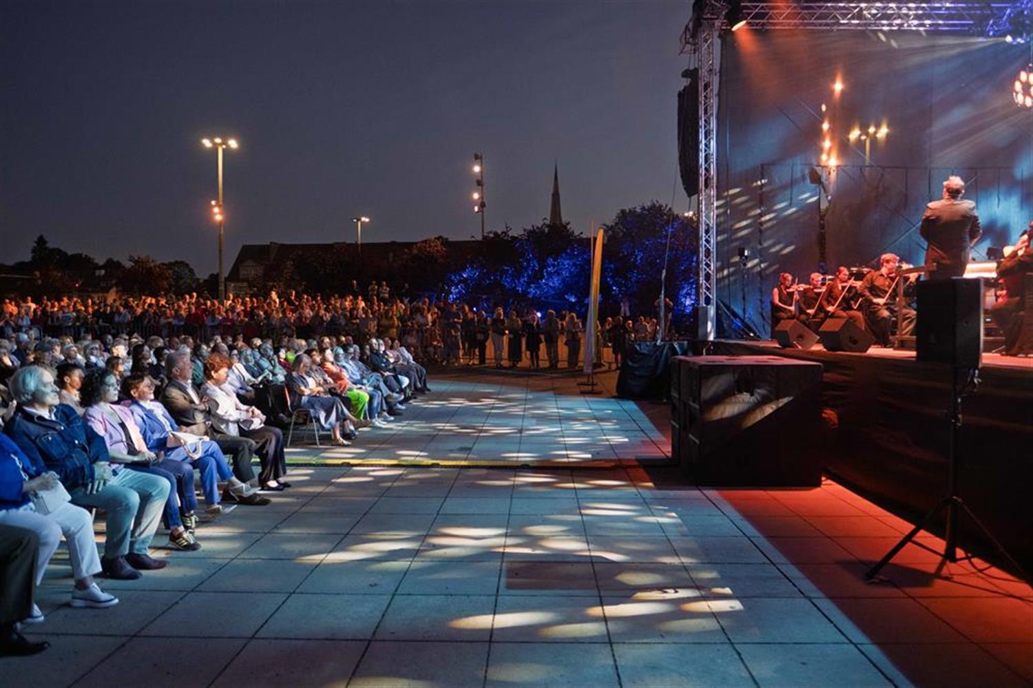 Autorem pomysłu koncertów jest dyrektor Opery na Zamku Jacek Jekiel. To on przed dziesięcioma laty wyszedł z propozycją, aby muzyka wybrzmiewała z miejsca, które samo w sobie jest symbolem pamięci. W niedzielny wieczór Jekiel powitał publiczność słowem wstępnym. – Dobrze widzieć was tu dzisiaj w tym miejscu. Muzyka będzie nami przemawiać tam, gdzie słowa czasem zbyt wiele ważą. To nasza wspólna pamięć i wspólne przeżywanie”– powiedział. Kilka chwil później mikrofon przejął prowadzący wieczór Tomasz Raczek. – Pozwólcie, że zabrzmią melodie, które pamiętacie. Niech dźwięk przypomni to, co słowa czasem ukrywają– tymi słowami wprowadził zgromadzonych w program koncertu.