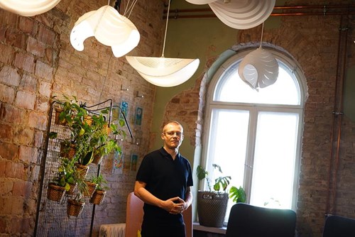 Michał Siełacz to szczeciński projektant i producent lamp. Z zawodu jest projektantem wzornictwa, zajmuje się również rysunkiem, portretami i dizajnem. W Domu Skandynawskim pokazuje swoje ręcznie robione lampy stworzone z wodoodpornej folii.