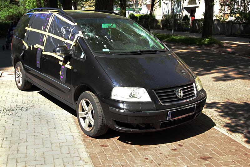 Na zdjęciu: Samochód, z którego antyterroryści wyciągnęli kierowcę.