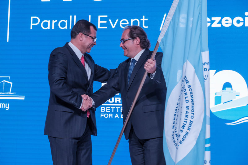 Zgodnie z tradycją, minister Gróbarczyk przekazał flagę Światowych Dni Morza przedstawicielowi Kolumbii, która będzie ich gospodarzem w przyszłym roku.