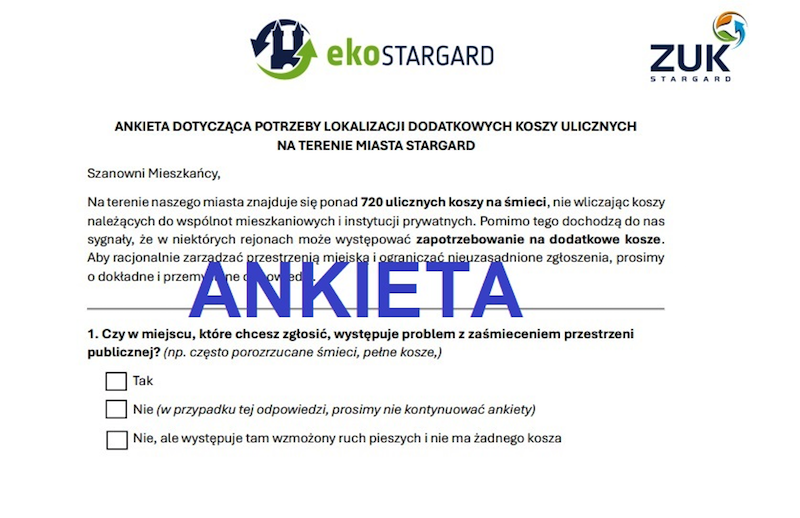 Zarząd Usług Komunalnych w Stargardzie chce się dowiedzieć, w których miejscach miasta brakuje ulicznych koszy na śmieci. Dlatego zwraca się z prośbą do mieszkańców o wypełnienie krótkiej ankiety.