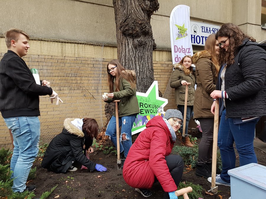 Na zaproszenie klasy Ia Liceum Ogólnokształcącego z Oddziałami Integracyjnymi Krokusowa Rewolucja zawitała na al.Wojska Polskiego w Szczecinie. Przed budynkiem szkoły posadziliśmy 750 krokusowych cebulek.