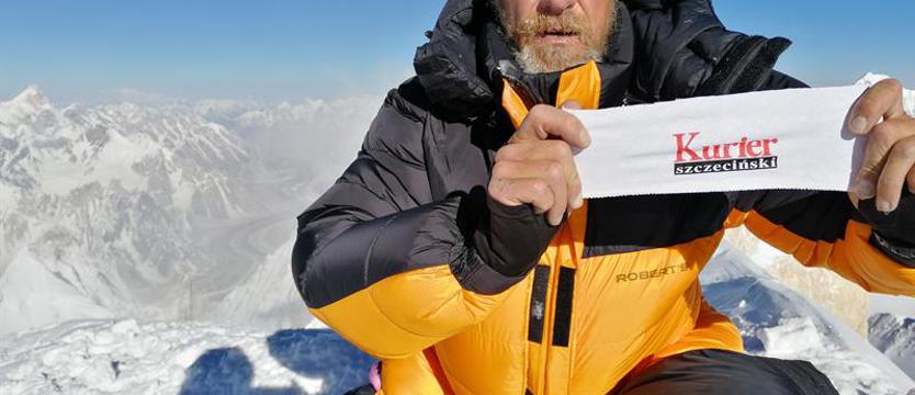 Przy okazji przypomnijmy, że patronem medialnym jego wyprawy w Karakorum był „Kurier Szczeciński”. Janusz, tak jak i podczas poprzednich wspinaczek, o naszej redakcji pamiętał, o czym świadczy to zdjęcie wykonane przez Denisa Urubko tuż po wejściu na szczyt Gaszerbrum II.