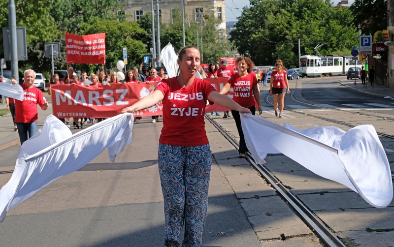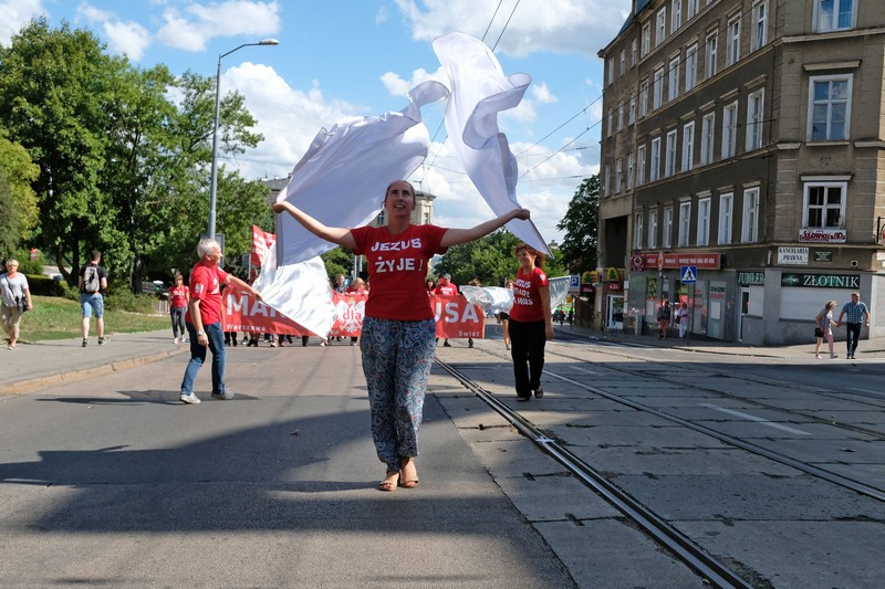 - Jestem pierwszy raz i bardzo mi się podobało – powiedziała Danuta Dąbrowska, jedna z uczestniczek - Czuć miłość, czuć więź z tymi wszystkimi ludźmi, a przede wszystkim z Panem Jezusem. Jestem pod wrażeniem. Jakiś czas temu złamałam nogę. Sześć tygodni nosiłam gips, ponad miesiąc temu ten gips mi zdjęli. Wczoraj stał się cud – jeden z pastorów podszedł do mnie, dotknął mojej nogi i się pomodlił. I teraz chodzę normalnie, choć wcześniej nie mogłam. Nie mogłam normalnie po schodach zejść. Pastor powiedział, że to siła Pana Jezusa i ja w to uwierzyłam. Doszłam do Jasnych Błoni aż z placu Tobruckiego, nie kulejąc. Tak jak jest napisane na koszulkach uczestników – wiara, nadzieja, uzdrowienie…