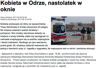 W lutym naszych Internautów najbardziej zainteresowała informacja Kobieta w Odrze, nastolatek w oknie. Opisywaliśmy w niej dwie dramatyczne sytuacje, które prawie równocześnie wydarzyły się w Szczecinie. W obu na szczęście udało się zapobiec tragedii.