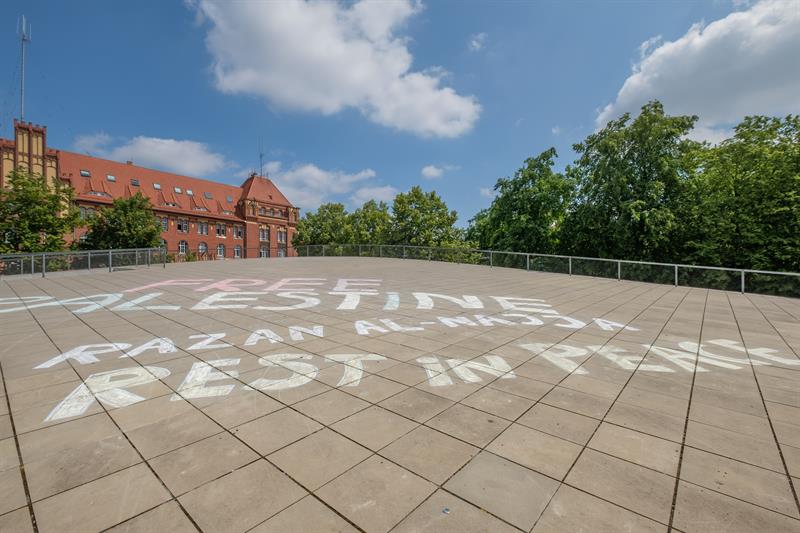"FREE PALESTINE RAZAN ALL-NAJJA REST IN PEACE" - to napis, który od kilku dni widnieje na dachu Centrum Dialogu Przełomy w Szczecinie. Autor do tej pory jest nieznany.