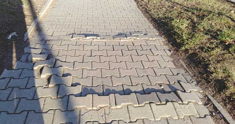 To jest uszkodzony chodnik? Proponuję "wycieczkę" na ul. Szosa Polska przy przystanku Kolonistów (w kierunku centrum) tam to dopiero są "atrakcje" na chodniku.