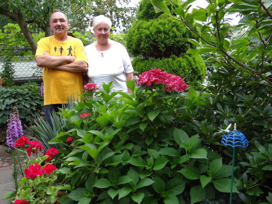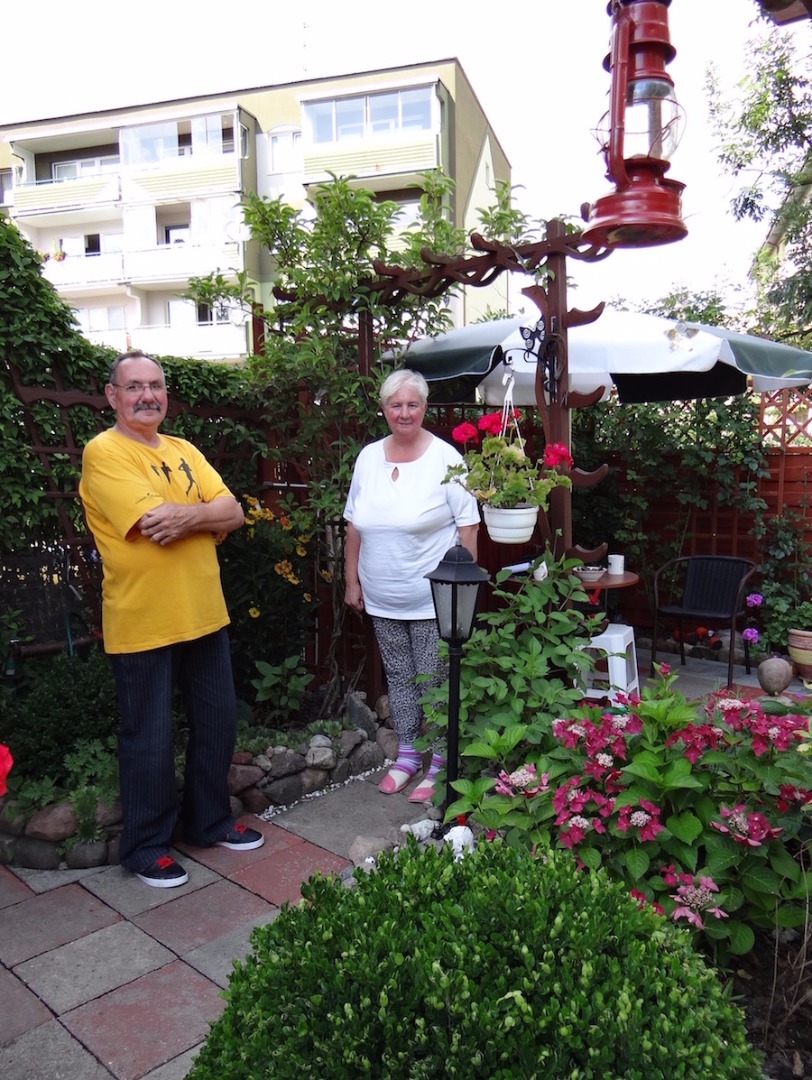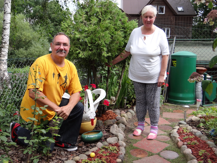 Na zdjęciach: Krystyna i Jan Kaźmierscy oraz ich goście w przyblokowym ogrodzie z bajek i z baśni przy ul. Czerwonej w Szczecinie.