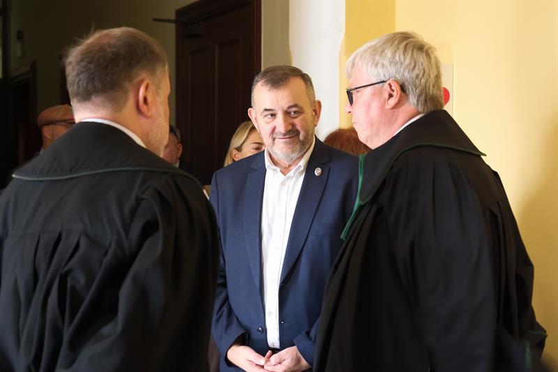 Stanisław Gawłowski z adwokatami w szczecińskim sądzie. Fot. Dariusz Gorajski