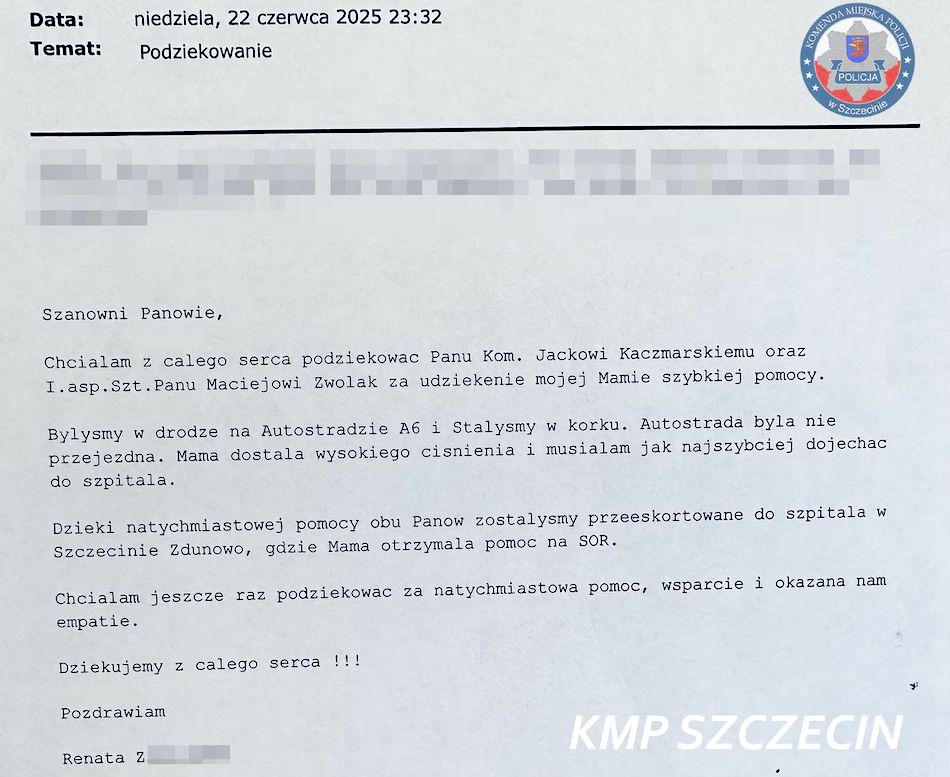 W miniony weekend, w godzinach popołudniowych, do funkcjonariuszy szczecińskiej drogówki pełniących służbę w rejonie Klinisk Wielkich podjechał kierowca samochodu osobowego. W pojeździe znajdowała się pasażerka – 85-letnia kobieta, która skarżyła się na poważne duszności i znaczne pogorszenie samopoczucia.