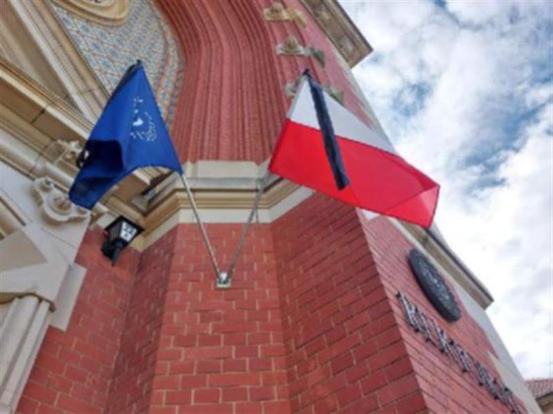W związku z tragedią na Uniwersytecie Warszawskim na fladze przed rektoratem Uniwersytetu Szczecińskiego pojawił się kir. Fot. Uniwersytet Szczeciński