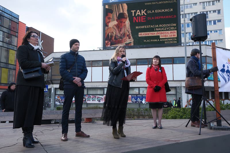 "Ręce precz od naszych dzieci!", między innymi takie hasło skandowali uczestnicy sobotniego protestu na placu Pawła Adamowicza. Protestujący, skrzyknięci przez inicjatywę Odpowiedzialny Szczecin, krytykowali zmiany w polskich szkołach. Zwłaszcza wprowadzenie przedmiotu edukacja zdrowotna.
