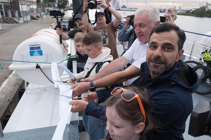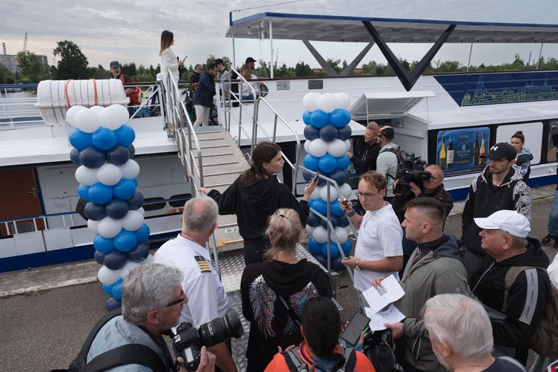 Na pokładzie jednostki znalazło się kilkadziesiąt osób, w tym wielu pasażerów z rowerami – nowa linia cieszy się dużym zainteresowaniem zarówno wśród turystów, jak i mieszkańców regionu. Uroczystego przecięcia symbolicznej wstęgi dokonali starosta policki Shivan Fate oraz kapitan statku Janusz Just, dając tym samym sygnał do rozpoczęcia sezonu rejsowego.