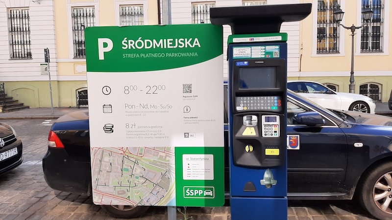 postój płatny we wszystkie dni tygodnia w godzinach od 8 do 22 (za wyjątkiem 2 maja, 24 i 31 grudnia)