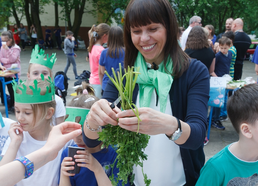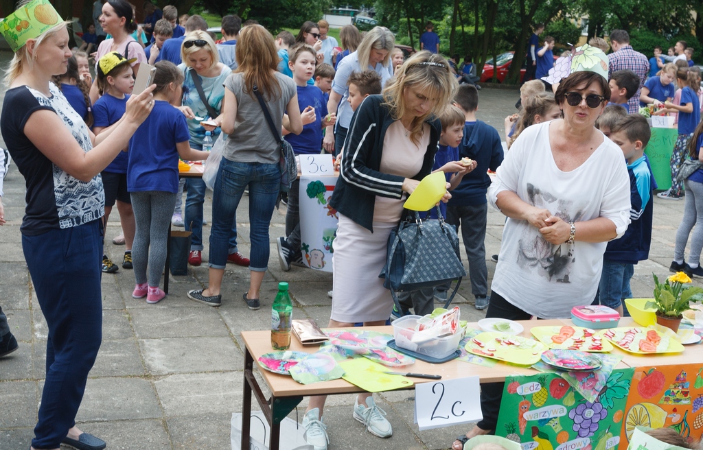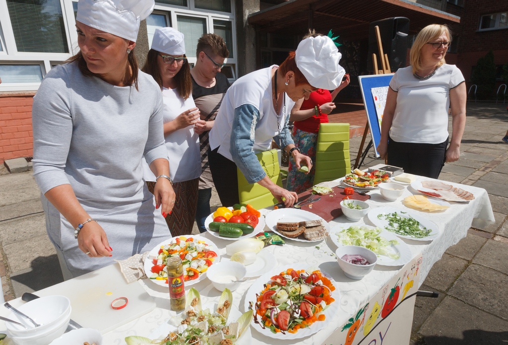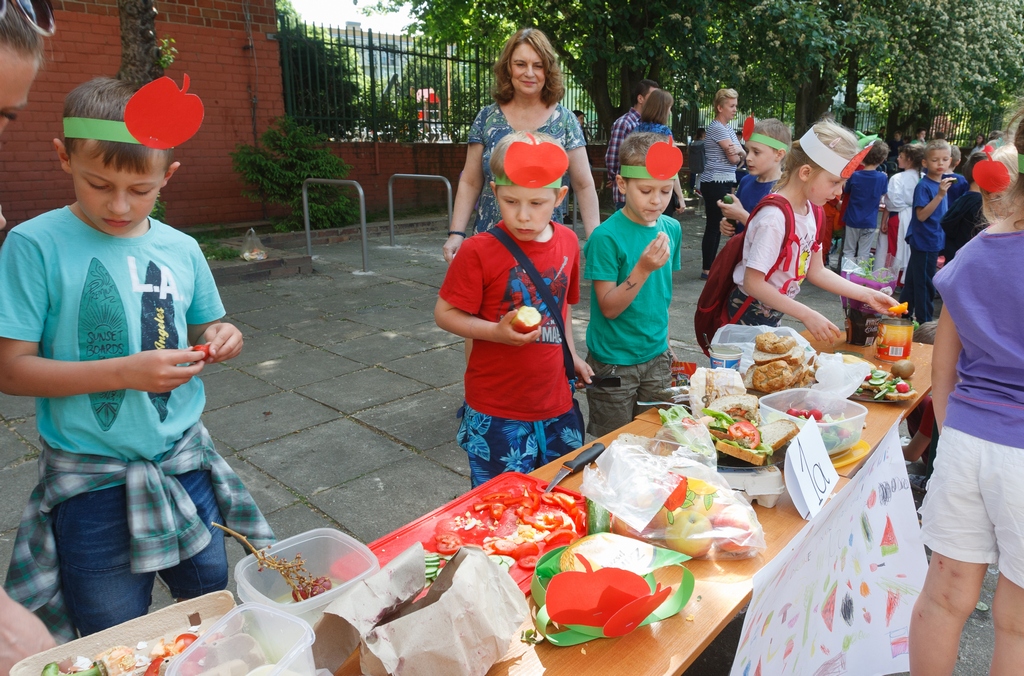 Imprezę zorganizowano z inicjatywy Rady Rodziców, której ochoczo przyklasnęli nauczyciele i szkolna pani dietetyk. Bo choć placówka dba, by w menu uczniów na stołówce przemycać jak najwięcej warzyw i owoców, i choć na lekcjach sporo się tu mówi o prawidłowych zasadach żywienia, uznano, że warto o tym przypomnieć również w formie wspólnej zabawy. Każda z klas przygotowała więc swoje zdrowe śniadanie, a wiedzę dzieci z tego zakresu oceniało jury na czele ze szkolną Magdą Gessler, w rolę której wcieliła się dyrektor SP 56 Bożena Wojtkiewicz.