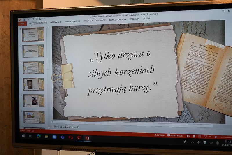Z prezentacji dowiedzieliśmy się, że bohaterka, której poświęcono spotkanie, była nie tylko członkinią Armii Krajowej i żołnierką, ale również - a może przede wszystkim - nauczycielką. Jej działalność w kolejnych latach życia na Pomorzu Zachodnim związana była z upamiętnieniem historii Armii Krajowej i odkłamywaniu historii II wojny światowej.