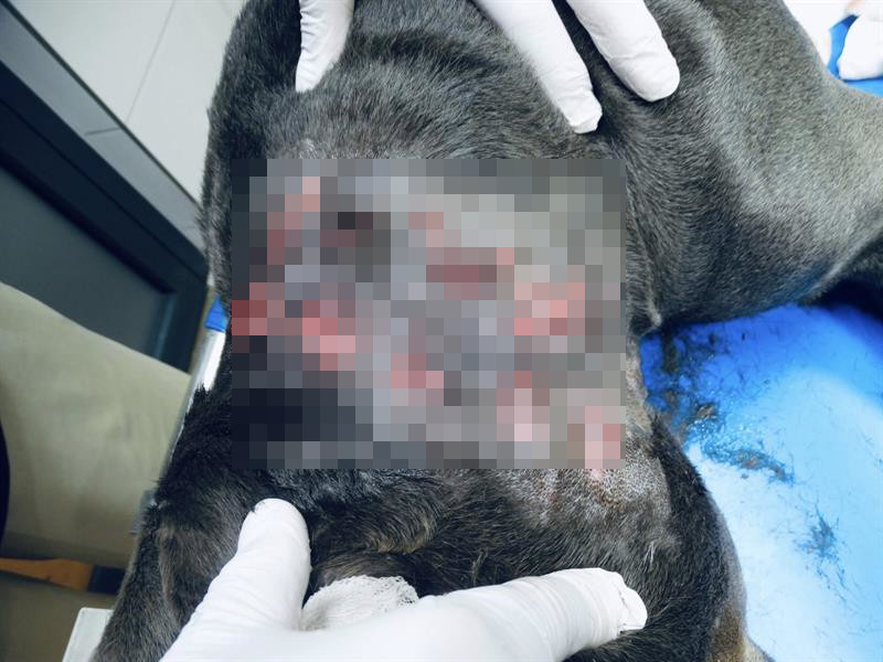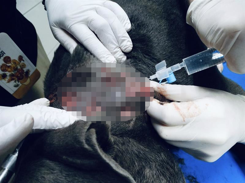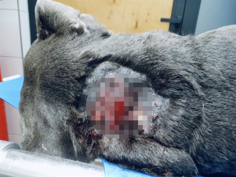 Potem psa zabrała policja, nadal był zdrowy. Następnie trafił do opiekunów zwierząt i nagle ma rany.