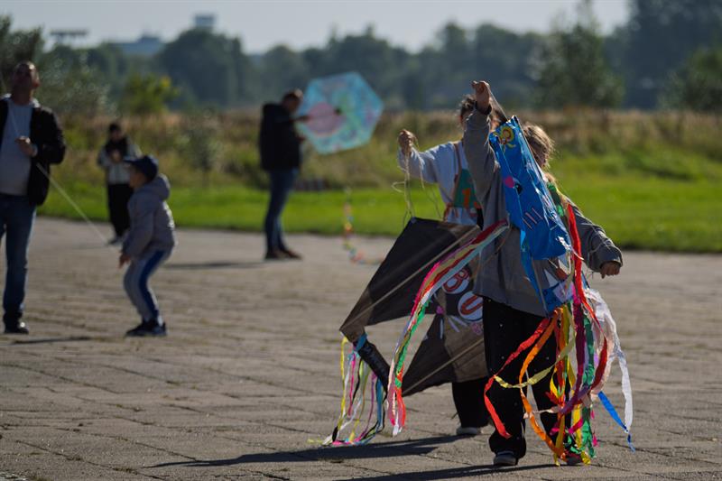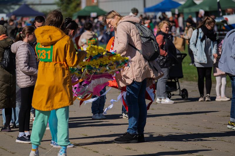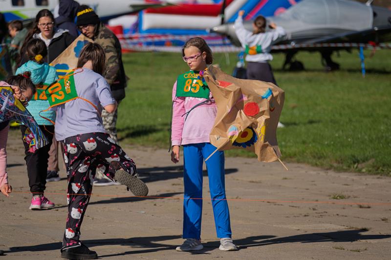 Na placu przed hangarem trwały konkursy artystyczne. Dzieci malowały kredą, a jurorzy wybierali najładniejsze konstrukcje. Na widowni panowała rodzinna atmosfera. – Tata, on lata! – ekscytował się ośmioletni Maciek, gdy jego latawiec w kształcie nietoperza wzniósł się wysoko nad lotnisko. Obok niego dziewczynka z klasy pierwszej przyznała nieśmiało: – Mój latawiec trochę się zaplątał, ale i tak się cieszę, że mogę tu być.