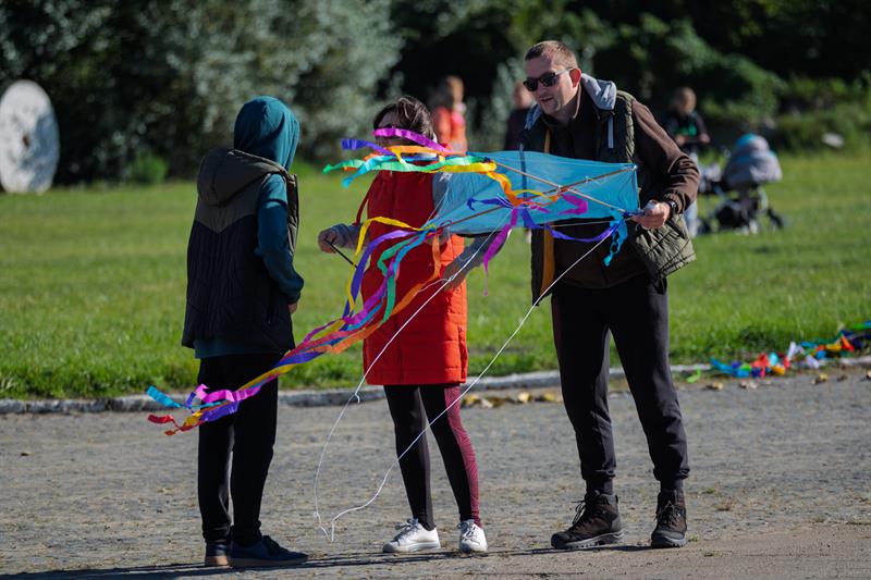 Obok dzieci rywalizowali też dorośli. – Fajnie, że możemy razem z córką puścić własnoręcznie zrobiony latawiec – mówił pan Tomek, trzymając mocno sznurek. – Choć przyznam, że to ona mnie uczyła, jak się to robi – dodał z uśmiechem.