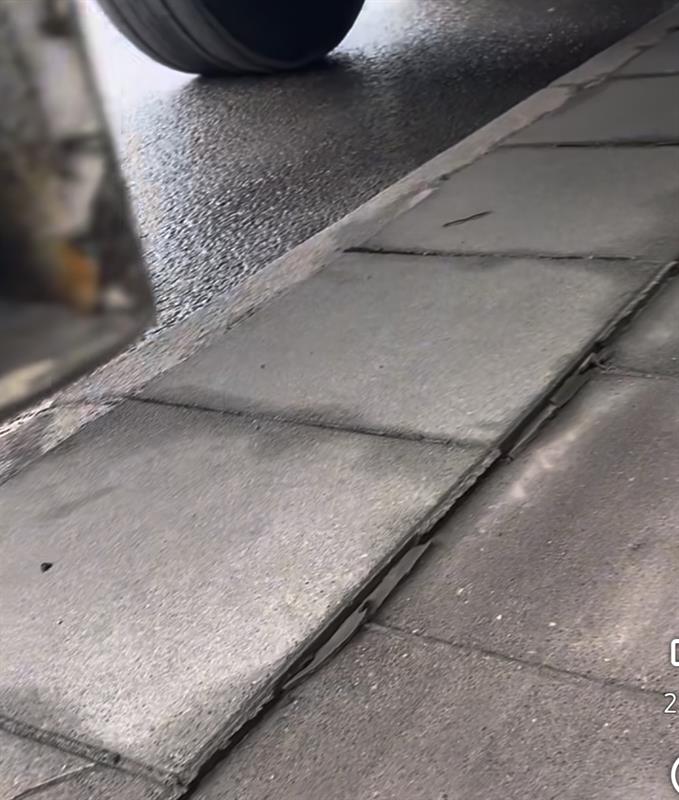 Jednocześnie pokazuje efekty tego postoju: płyty chodnikowe są całkowicie ruchome i wybrzuszone. Chodnik będzie wymagał ponownej interwencji, naprawy i kolejnych nakładów finansowych.