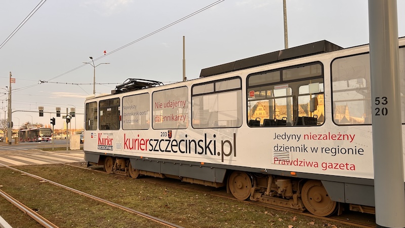 Próbowali zniszczyć ten tramwaj, tak jak SB-cy wciąż próbują niszczyć Kurier, bo nie podoba im się, że zachował niezależność. Ale się nie nie udało, jechał nawet bez koła. "Nie udajemy dziennikarzy" - dobre hasło. W Szczecinie jeden facet bez przerwy udaje i nabrał już sporo osób.
