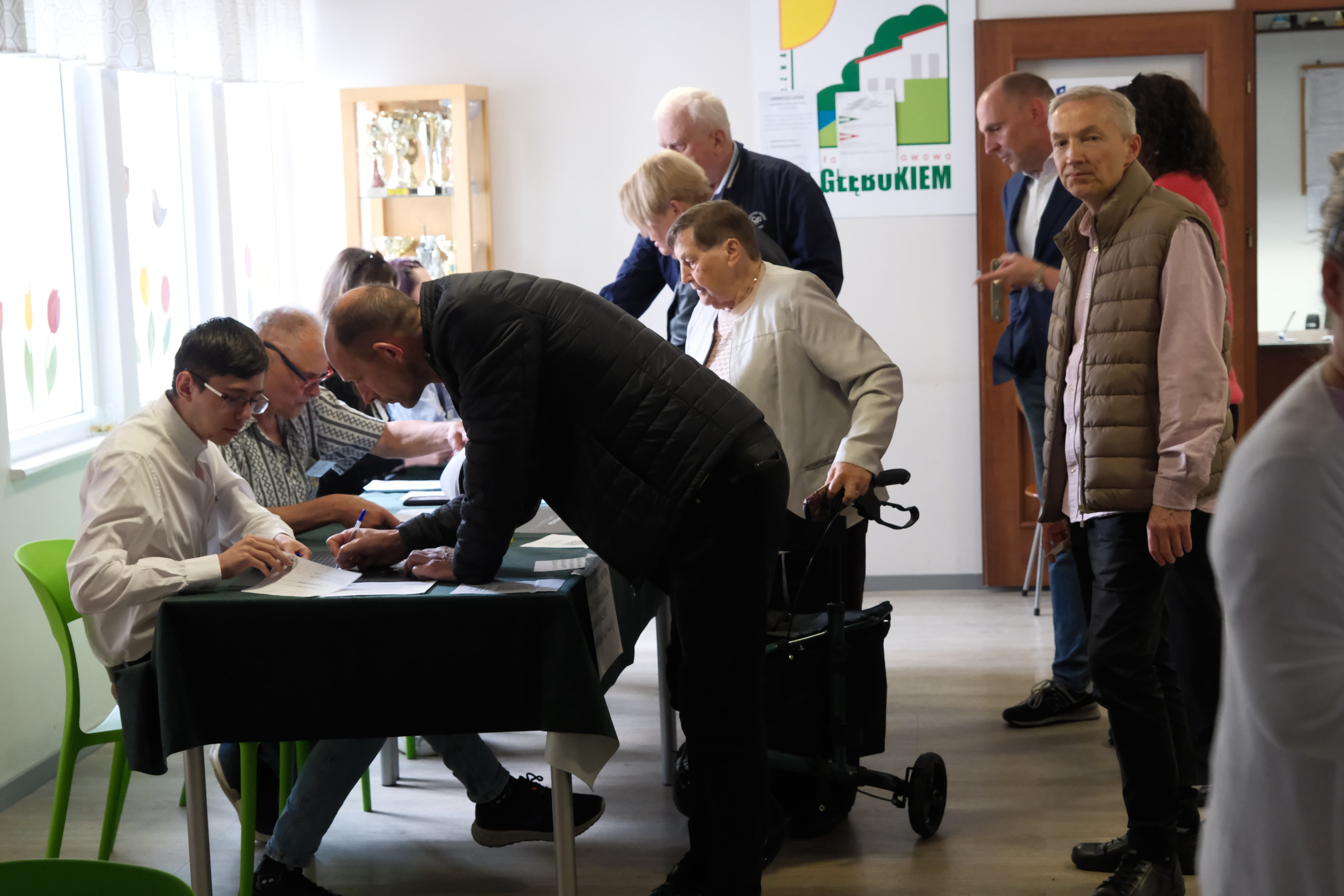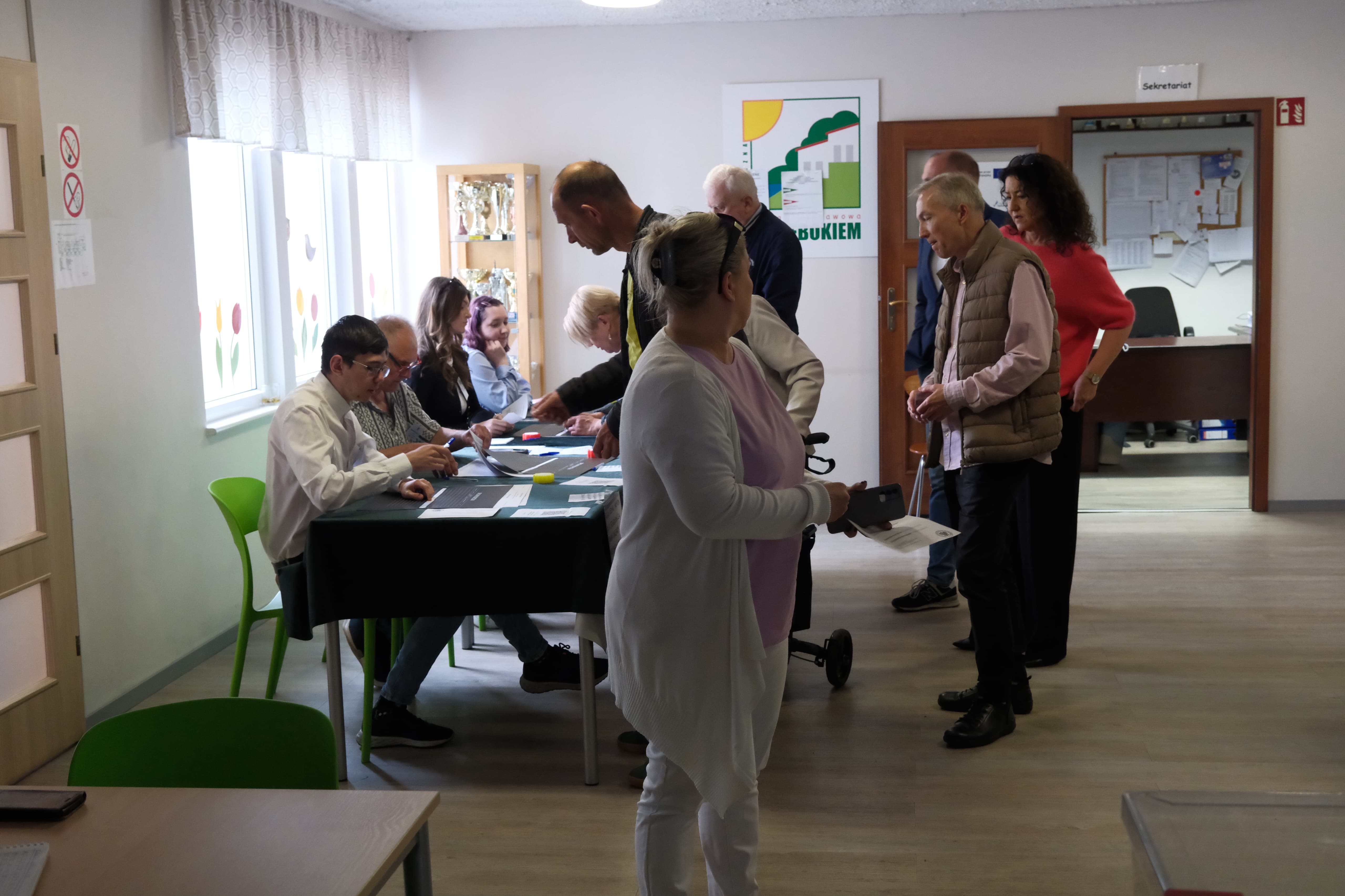 W samej komisji wyborczej od rana panuje spory ruch. Szczecinianie, aby uzyskać kartę do głosowania, muszą stać w kolejce.