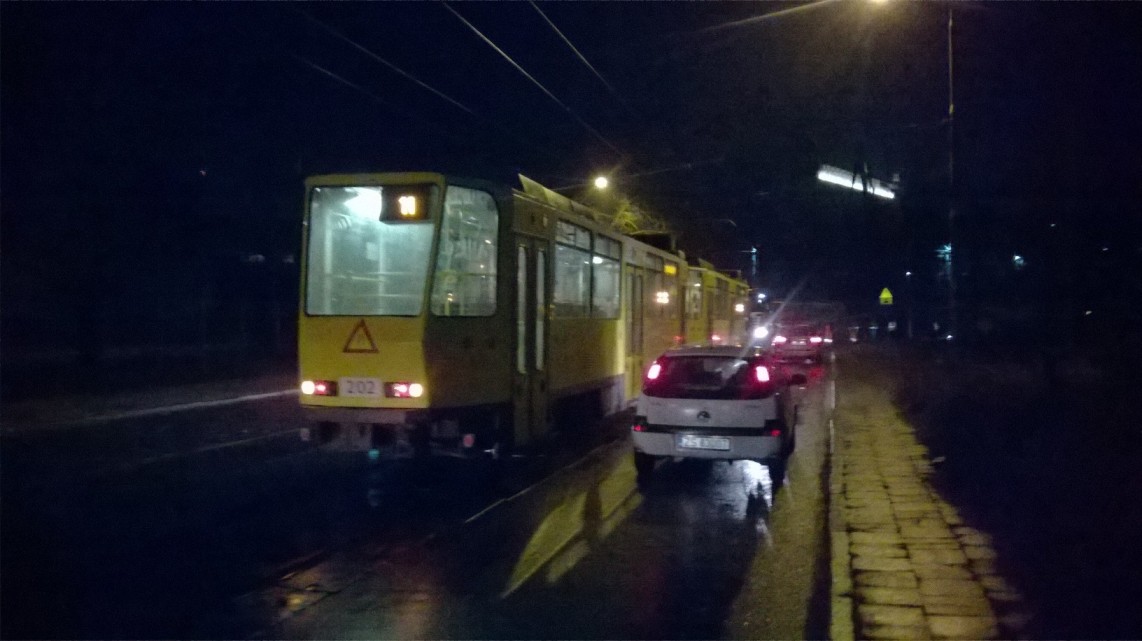 Przejazd dla samochodów jest mocno utrudniony i możliwy jedynie w stronę centrum. Linie 6 i 11 w miarę możliwości zawracane są przy stoczni, ale stoją w długim korku. Autobusy zastępcze kursują objazdem przez ul. Rugiańską i Stalmacha do przystanku "Lubeckiego" i dalej w kierunku Gocławia. ToT