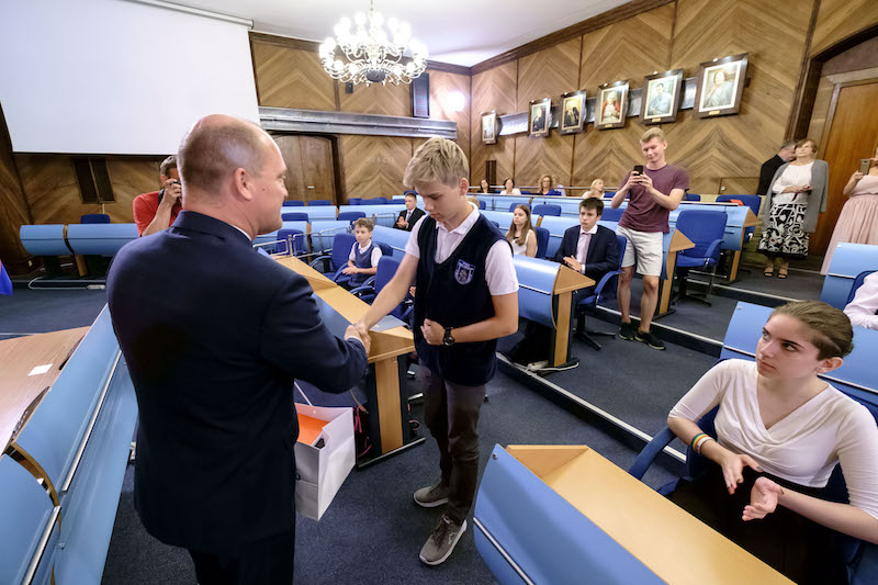 Czytniki e-booków, głośniki bezprzewodowe oraz smartwatche otrzymało w poniedziałek, z rąk prezydenta Piotra Krzystka, 22 uczniów szczecińskich szkół, którzy nie mieszkają na stałe w Szczecinie, ale w innych gminach. Wśród nich najwięcej punktów za osiągnięcia w konkursach otrzymali: Adrian Końca z Technikum Zawodowego nr 4 w Zespole Szkół nr 8 oraz Bartosz Jaworek z Oddziału Gimnazjalnego w Szkole Podstawowej nr 6 w Zespole Szkół Ogólnokształcących nr 7.