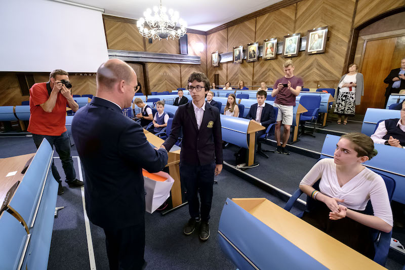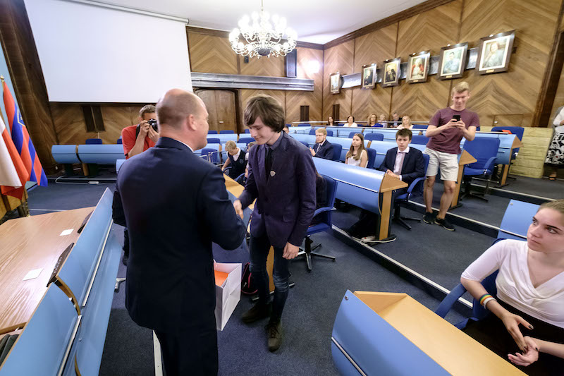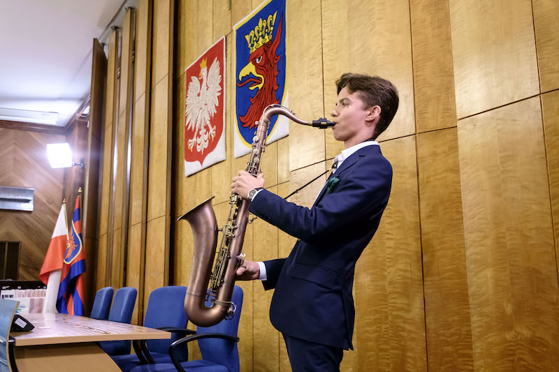 Przypomnijmy, że w 2015 roku po raz pierwszy nie przyznano nagrody prezydenta osobom uczącym się w szczecińskich szkołach, ale mieszkającym poza Szczecinem. Wzbudziło to sporo kontrowersji w środowisku oświatowym. Stąd urzędnicy zdecydowali, że w kolejnych latach będą przyznawane nagrody rzeczowe. Corocznie wręczane są w sali sesyjnej Urzędu Miasta, w obecności dyrektorów szkół nagrodzonych uczniów, ich nauczycieli i rodziców. Na poniedziałkowej uroczystości obecny był też m.in. wiceminister edukacji - Maciej Kopeć. W trakcie gali wystąpili uzdolnieni muzycznie uczniowie V LO - Tytus (saksofon) oraz duet - Klaudia i Ewa (wokalistki).