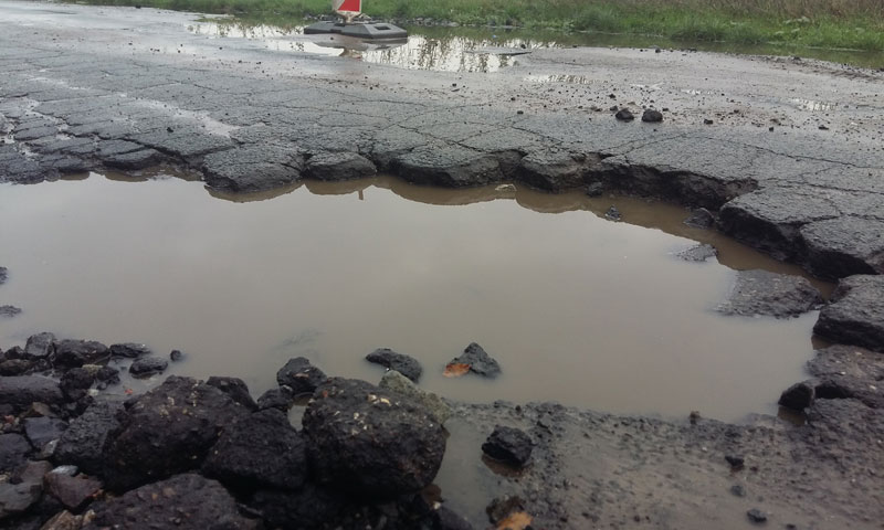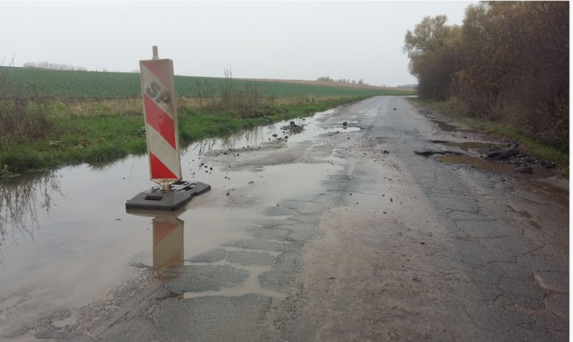 cytat "Drogę niszczy woda opadowa z pól, która podmywa jezdnię i pobocza." - oczywiście ciężarówki tamtędy jeżdżące wcale nie niszczą drogi , tylko deszczyk robi taką degradację ...