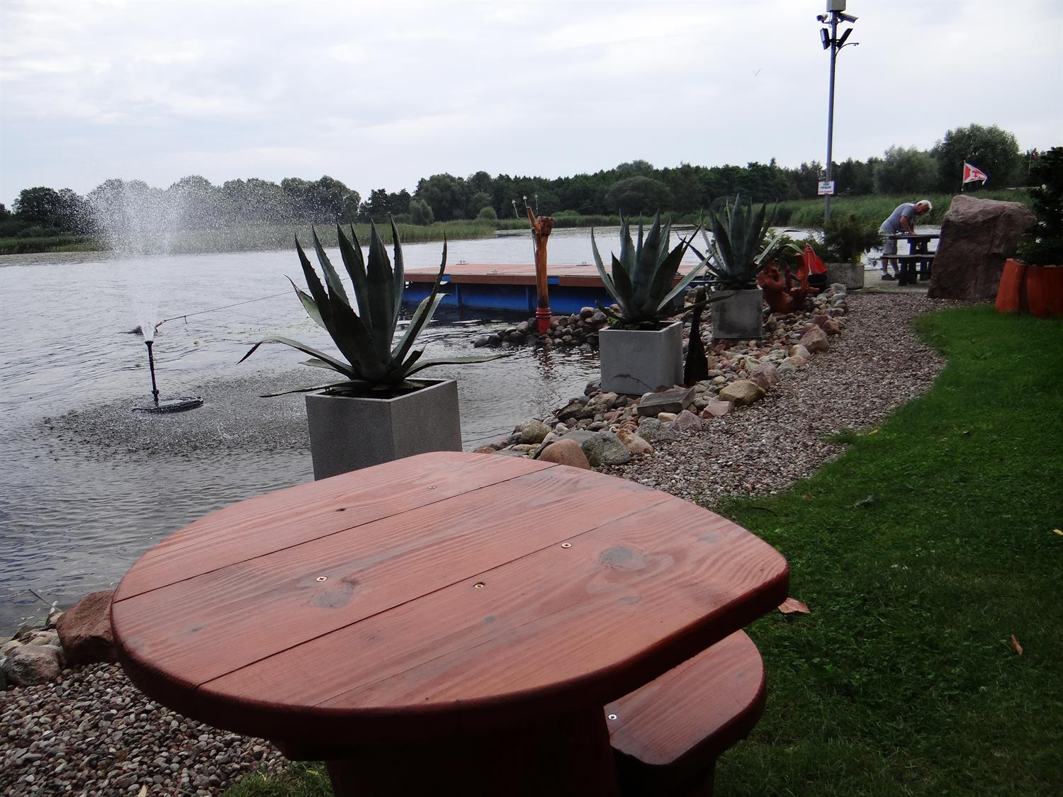 Odczyścili pas plaży, usunęli chwasty z wody, robiąc miejsce szlachetniejszym roślinom, podnieśli wzdłuż niej wał przeciwpowodziowy. Wymaga jeszcze ona dopieszczenia, ale to jedno zadań na kolejny rok. Podobnie jak montaż stałej fontanny w zatoczce ze strumieniem wody na wysokość 10 m. Teraz działa mniejszy wodotrysk, czynny sezonowo. Jak zaznacza Piotr Wódz, szczególne wyrazy uznania i wdzięczność należą się osobie, która kryje się pod kryptonimem wojskowym "Militarny 266"- jest to człowiek, który wykonywał i zarządzał organizacją najcięższych prac przy rewitalizacji terenu, ręcznym układaniu nasypów kamiennych, usuwaniu zalegających nabrzeże elementów betonowych.