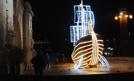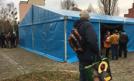 Przy choince w ławach ustawionych pod namiotem na bruku wysypanym sianem. Przy ul. św. Jakuba, obok szczecińskiej katedry, w przeddzień wigilii Bożego Narodzenia, w dzisiejsze popołudnie, na świątecznej wspólnej wieczerzy, modlitwie i śpiewaniu kolęd...