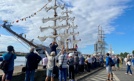 Następną jednostką, którą pożegnaliśmy w poniedziałek, był niemiecki żaglowiec "Gorch Fock". Fot. Piotr Sikora Tuż przed godziną 10 w poniedziałek pożegnaliśmy "Dar Młodzieży". Fot. Piotr Sikora *** Wcześniejsza informacja Finał regat The Tall Ships...