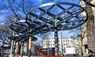 Kratownice na obrysie okręgów, zamontowane na stalowych słupach, które ustawiono w obrębie nowego przystanku tramwajowego, w bliskości kościoła garnizonowego. Już teraz wyglądają intrygująco. Jednak pełny efekt uzyskają dopiero po okryciu roślinami. Oryginalne...