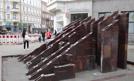 W labiryncie cegieł kobieta postawiła wiadro, z którego sprzedaje wiązanki bzu. Obok niej przechodzień oparł nogę na jednym z klinkierowym pustaków i zawiązuje but. Ktoś inny do butelki po piwie dostawił opróżnione „małpki". Tak ze zraszanej wodą rzeźba...