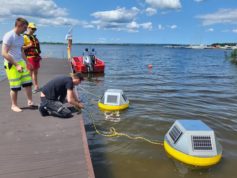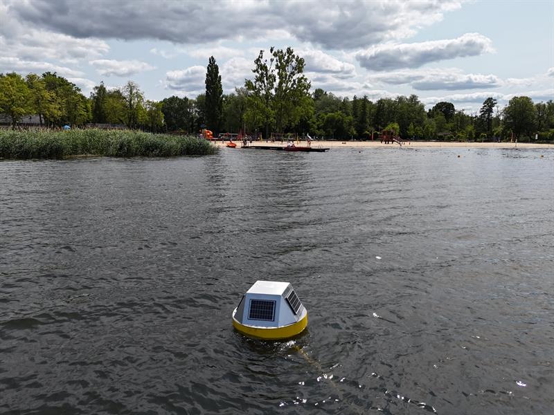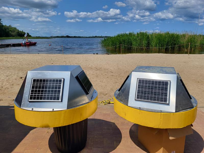 Na straży bezpieczeństwa korzystających z kąpieliska w Dąbiu są dwa małe pływaki – sondy, analizujące jakość wody i mające pomóc w ustaleniu sprawców nielegalnego zrzutu zanieczyszczeń do jeziora. Fot. UM Szczecin