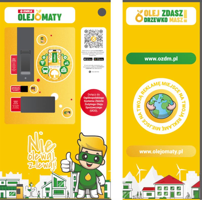 Olejomaty stanęły w punktach selektywnego zbierania odpadów wielkich miast - jak np. w Warszawie, Krakowie, Łodzi, Poznaniu, Wrocławiu. Podobnie jak - po kilka sztuk - w mniejszych ośrodkach, jak choćby w Dębicy Kaszubskiej, Mszczonowie, Ustce i na Helu. To automaty, z których korzystać może każdy, kto na telefon ściągnie bezpłatną aplikację „Olejomaty" i założy na niej konto. Potem wystarczy zeskanować kod QR na olejomacie, aby otrzymać specjalny pojemnik - wykonany z ekologicznego materiału, odporny na wysokie temperatury - przeznaczony do zbierania zużytego oleju spożywczego w