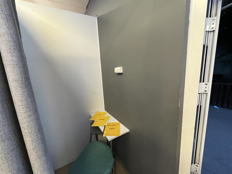 Klientów wchodzących do sklepu wita intrygujący widok - szara kotara. A za kotarą znajdują się dwa krzesła, stolik i menu. W tym „barze", niewiele większym niż fotobudka, można napić się alkoholu od g. 23 do g. 6, czyli wtedy, gdy obowiązuje zakaz sprzedaży alkoholu. Jest to możliwe, bo lokali gastronomicznych nocna prohibicja nie obowiązuje, a wydzielona część w sklepie teoretycznie takim lokalem jest. Specjalne tabliczki informują klientów, że pić mogą tylko na miejscu.