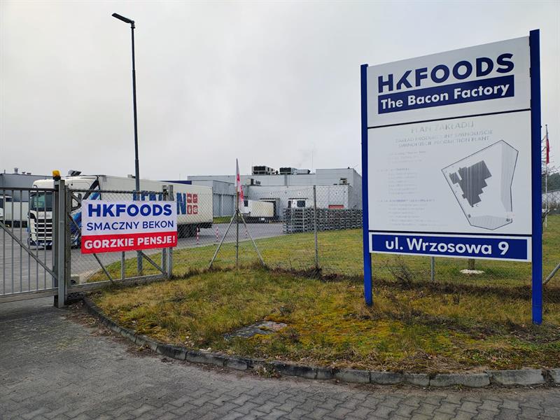 Na banerach, które zawisły przed zakładem czytamy: „Szanujcie ręce, które robią wasz zysk" i „Smaczny bekon, gorzkie pensje" przyczyny protestu pracowników są zatem oczywiste, a nad zakładem wisi groźba strajku. Mowa o największym producencie boczku w Zachodniopomorskiem, czyli fińskiej firmie HKFoods w Świnoujściu. Pracownicy chcą podwyżek, a - jak poinformował nas jeden z pracowników - zakład nie zgodził się na satysfakcjonujące ich podwyżki, argumentując to tym, że mogłoby to zakończyć działalność firmy w ciągu 3-4 lat.