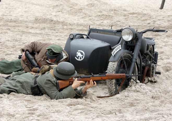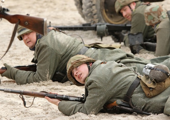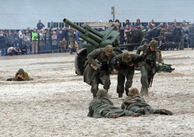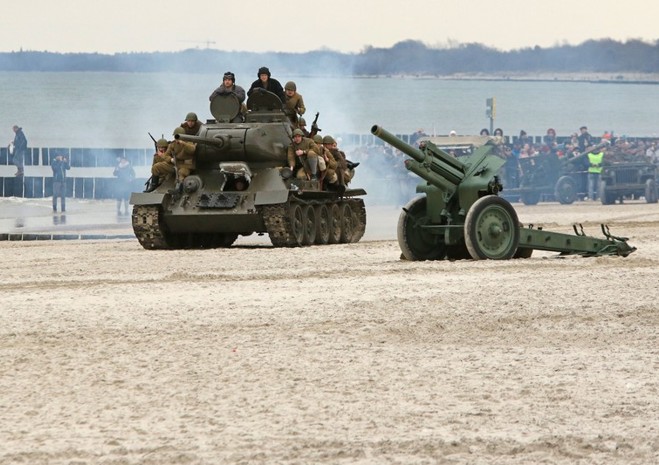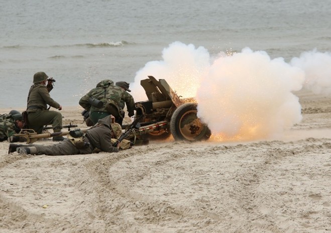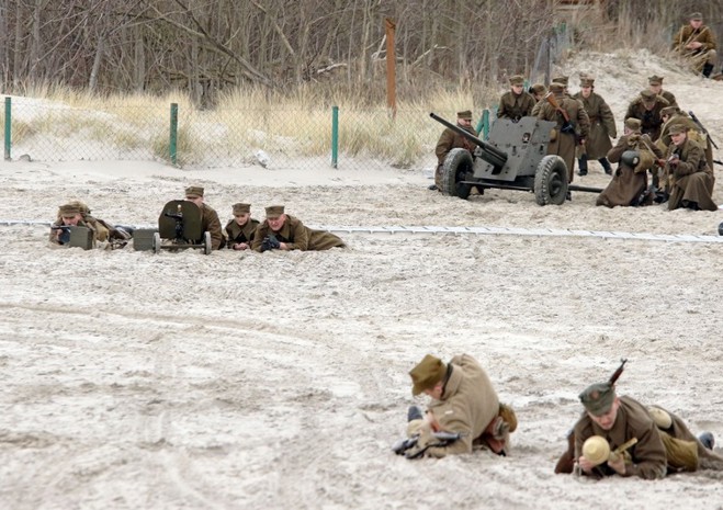 Na kołobrzeskiej plaży odbyła się w niedzielę (17 marca) rekonstrukcja historyczna boju o miasto w 1945 r. Fot. Artur Bakaj