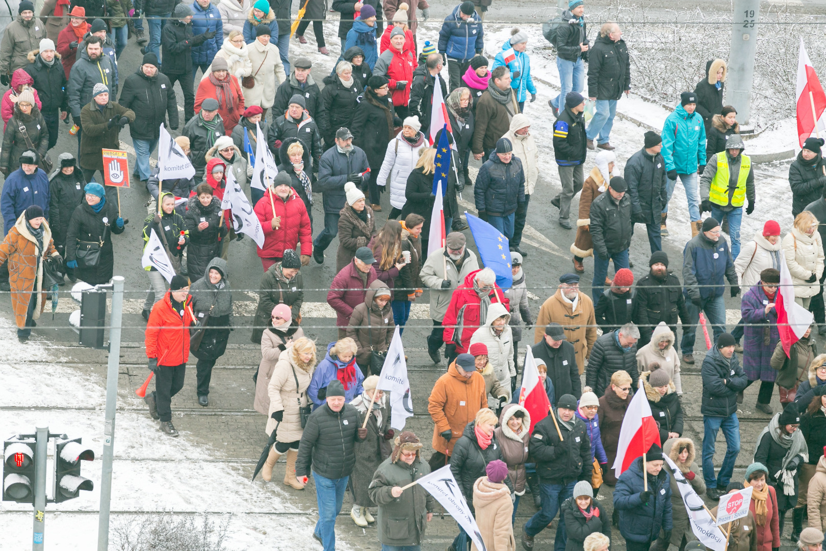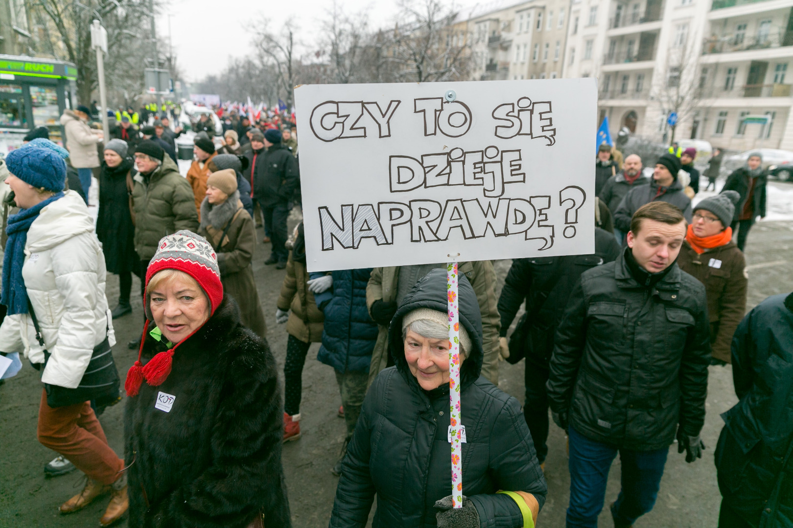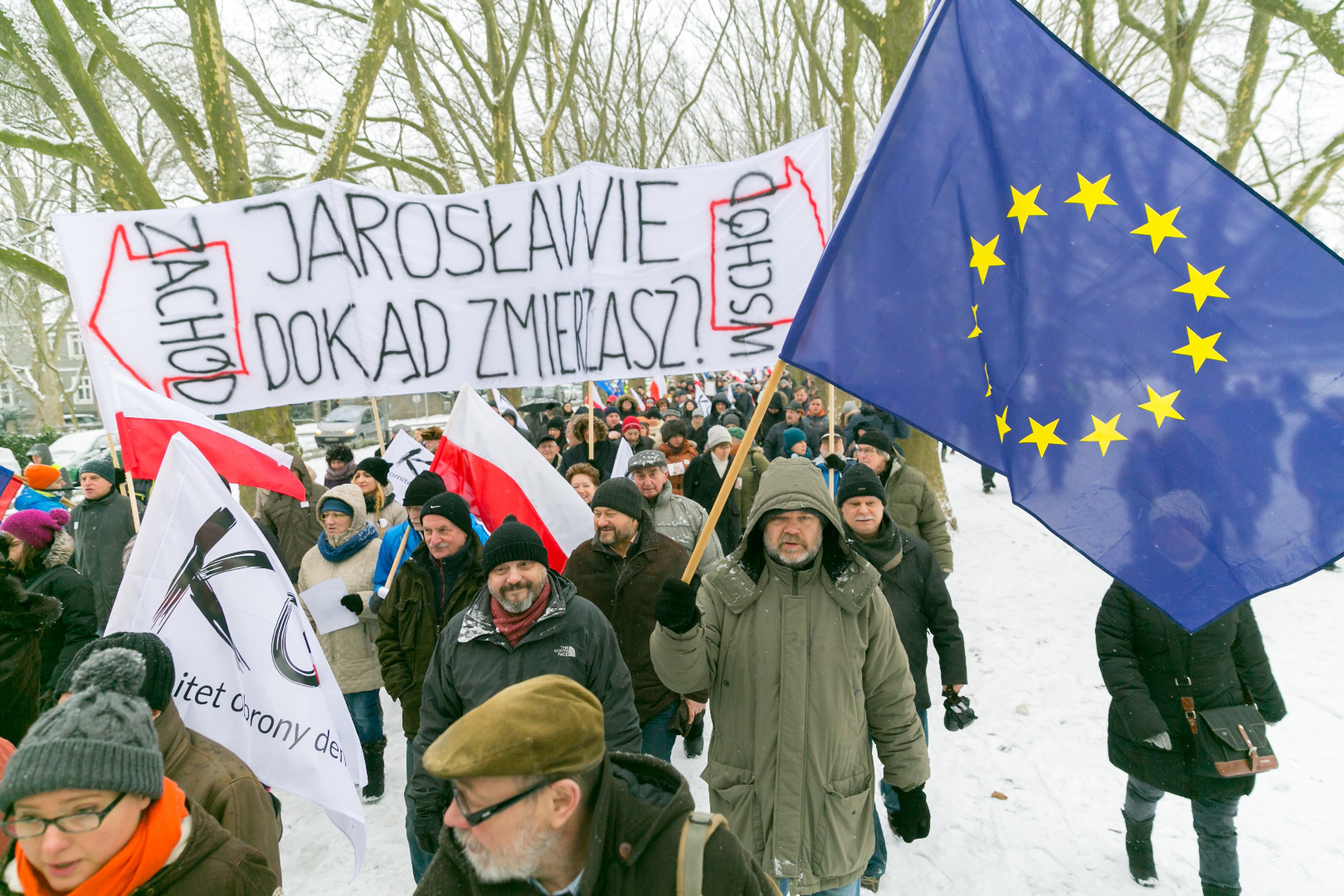 „Demokracja w Twoich rękach, pokaż Polsce, że nie pękasz", „Nie ma wolności bez prywatności" - takie m.in. hasła pojawiły się na transparentach podczas manifestacji zorganizowanej przez szczeciński Komitet Obrony Demokracji w sobotę (23 stycznia)