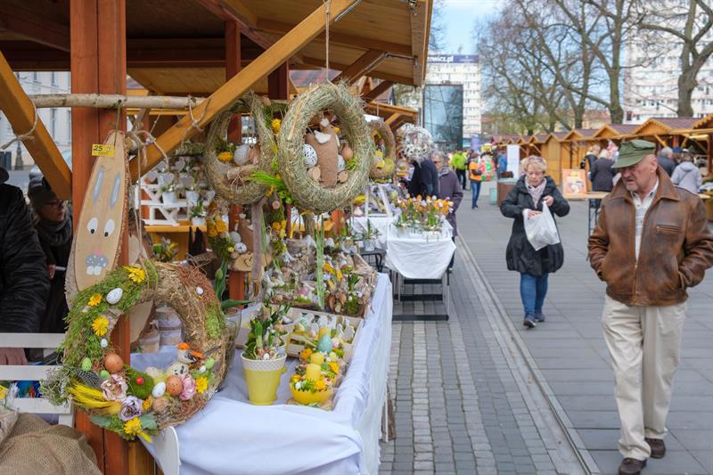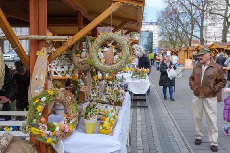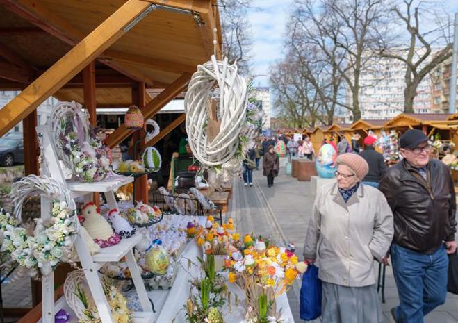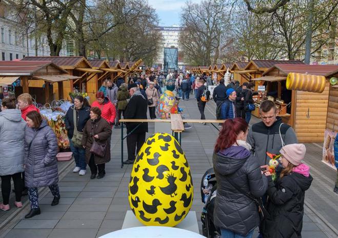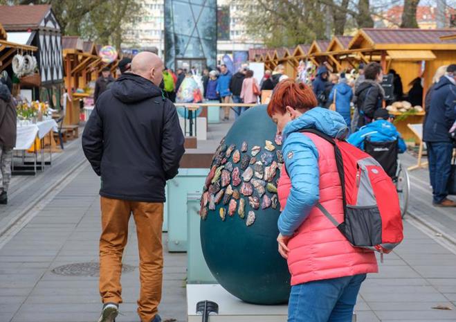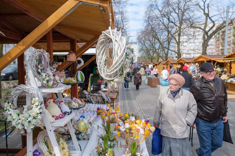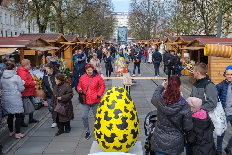 Smakowite mazurki, gigantyczne pisanki, chleby na zakwasie, a w kompozycjach z wiosennych kwiatów zajączki i kurczaczki - to wszystko i jeszcze więcej na Szczecińskim Jarmarku Wielkanocnym, który w sobotę (13 kwietnia) otworzył się na szczecinian i turystów w dawnej alei kwiatowej, czyli na pl. Żołnierza Polskiego.