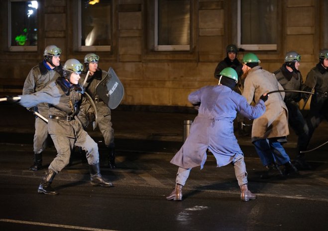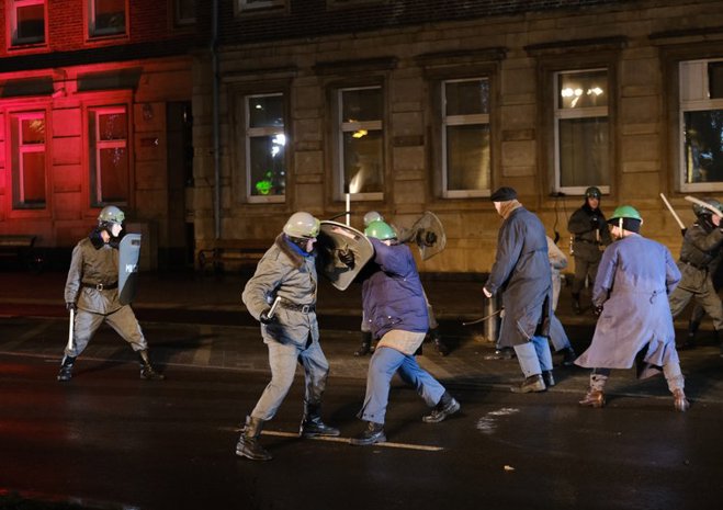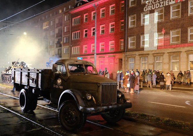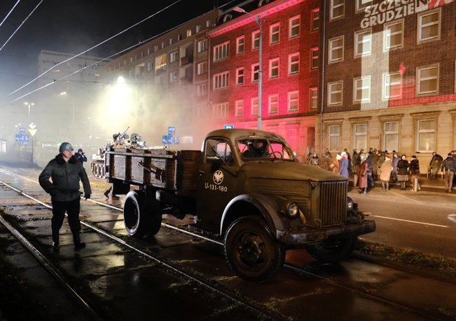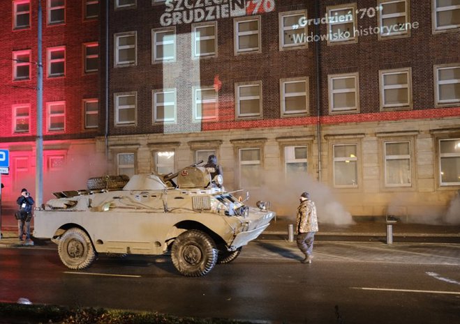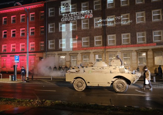Widowiskowa inscenizacja wydarzeń rewolty grudniowej 1970 r. odbyła się w czwartek późnym wieczorem w Szczecinie
