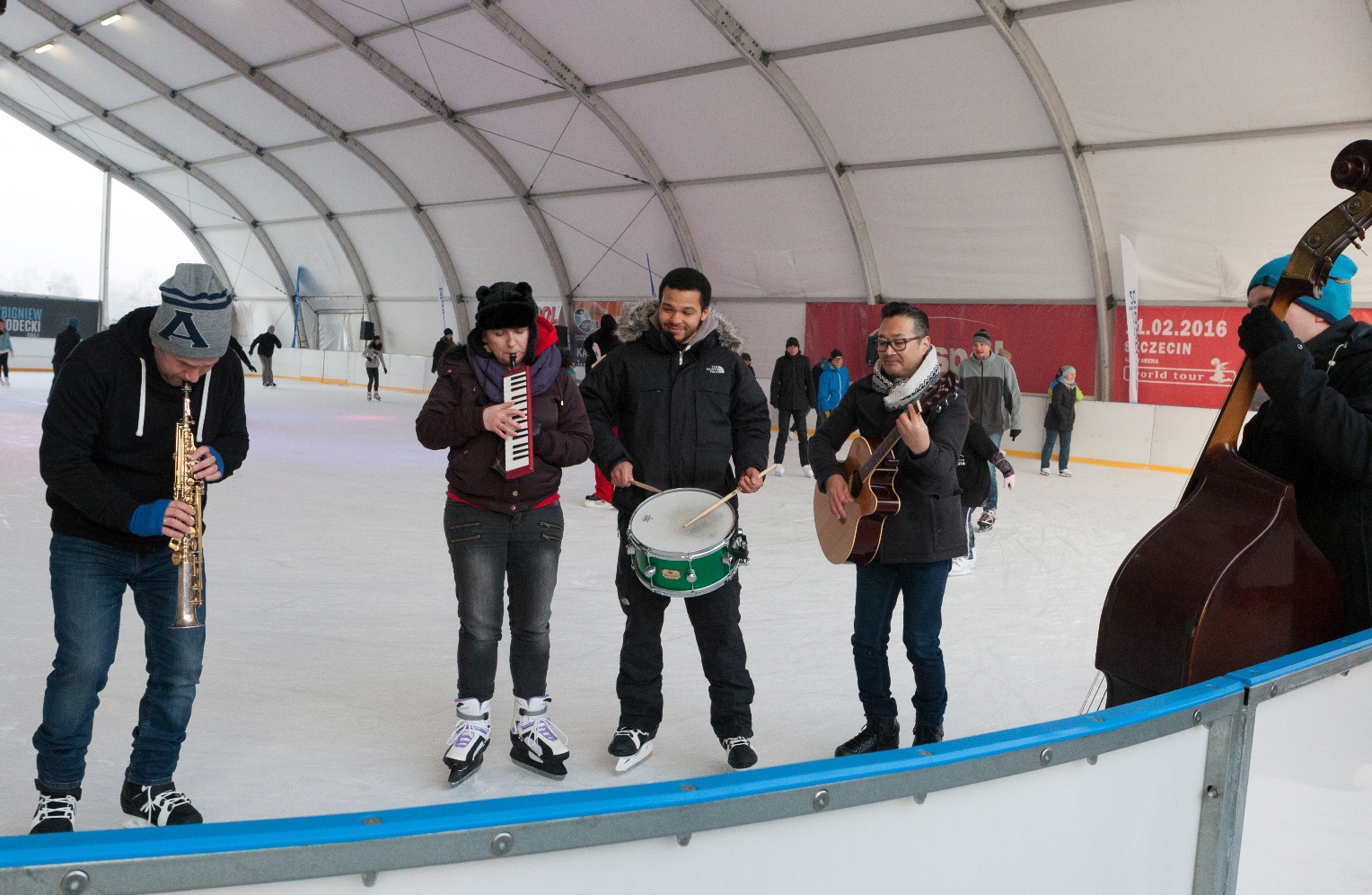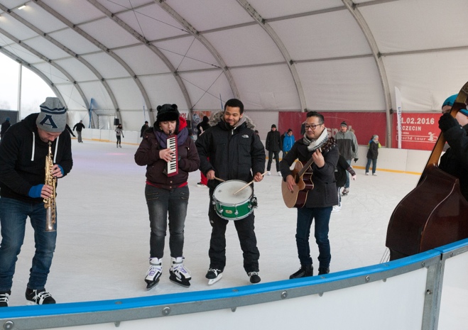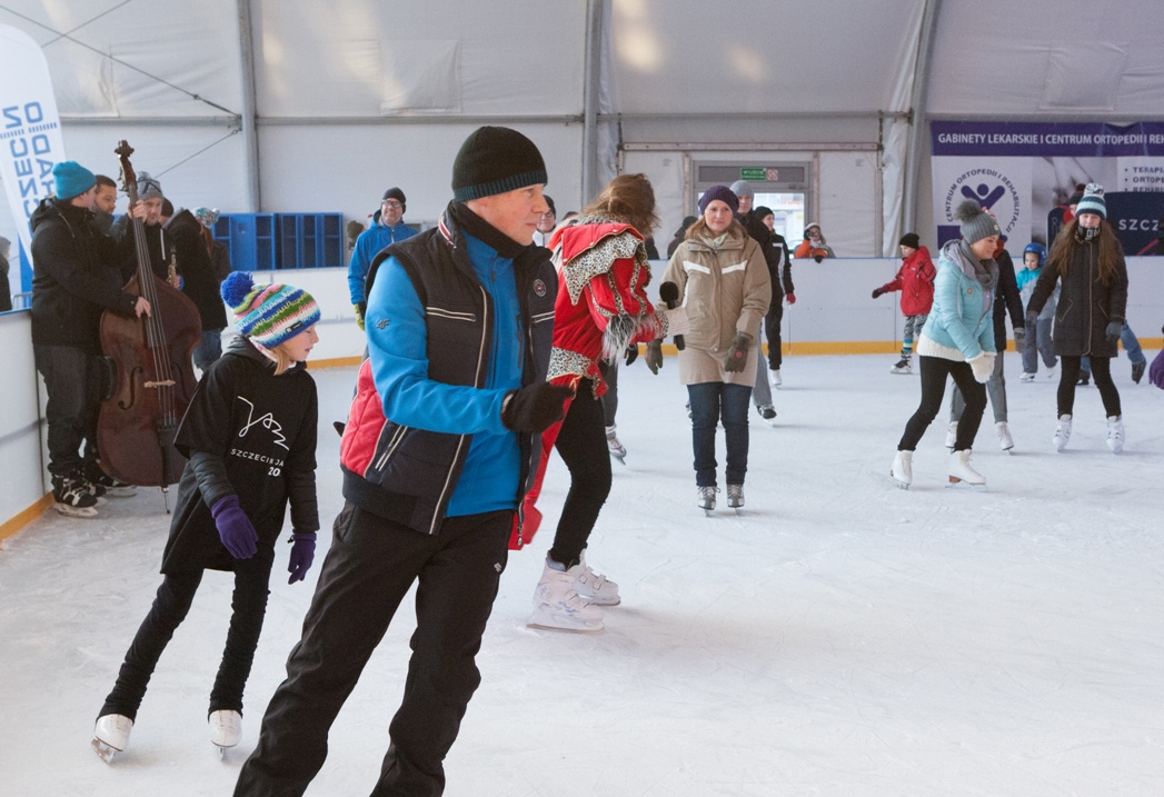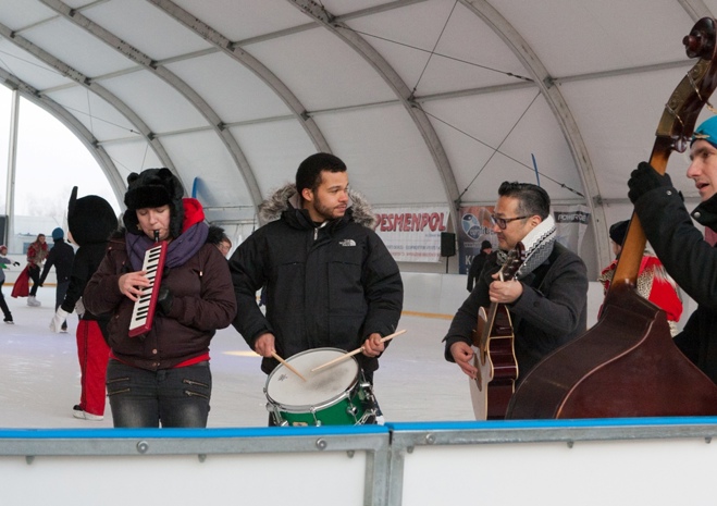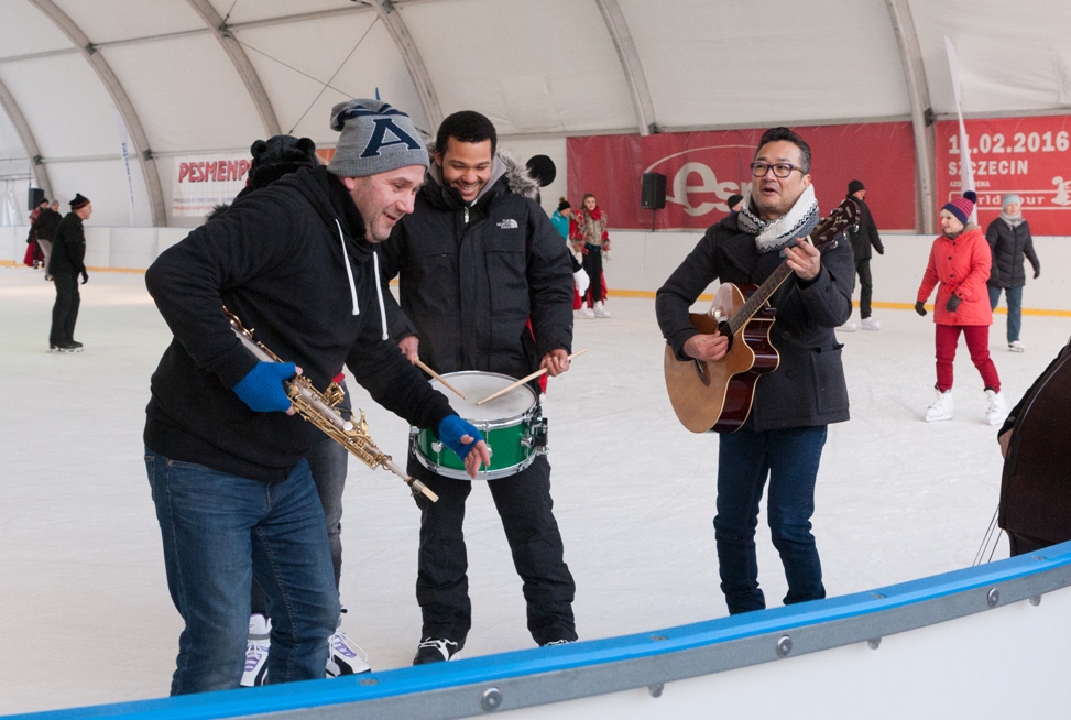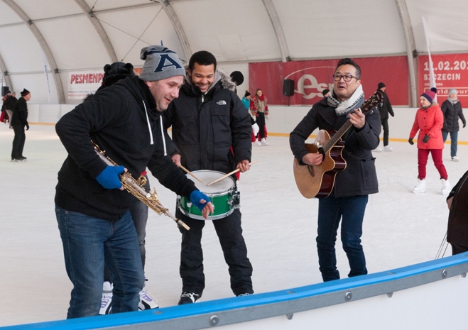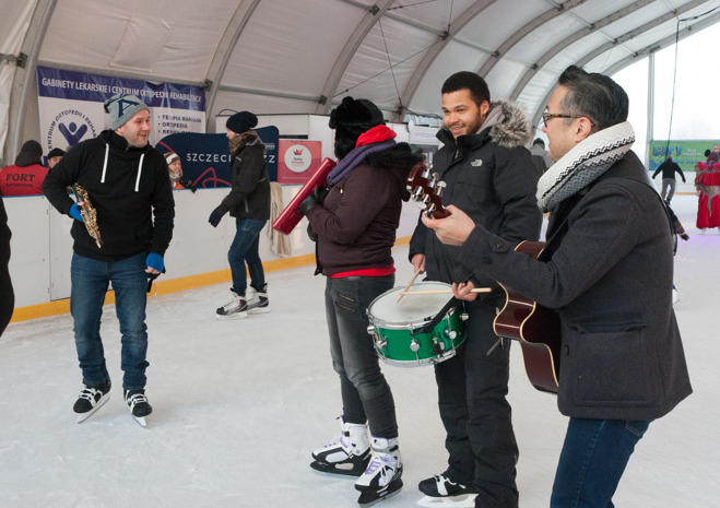 W dość niekonwencjonalny sposób promowano w niedzielę festiwal jazzowy, który na początku marca odbędzie się w Szczecinie. Otóż muzycy jazzowi pojawili się rano na lodowisku z improwizowanym występem.